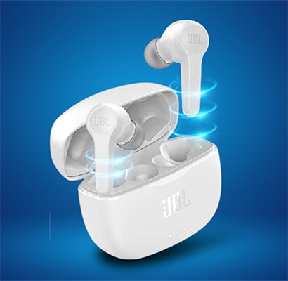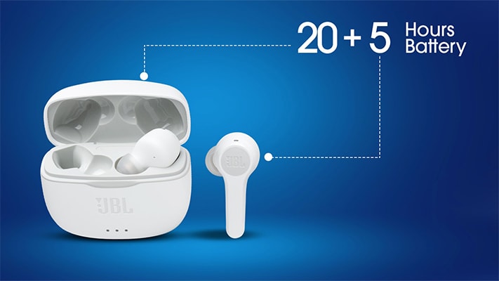 Device Protection Plan AddedJBL Tune 215 TWS Earbuds, Up to 25 Hours Battery Life, Pure Bass Sound, Dual Connect, Bluetooth v5.0, Built-in Microphone, Voice Assistant, White