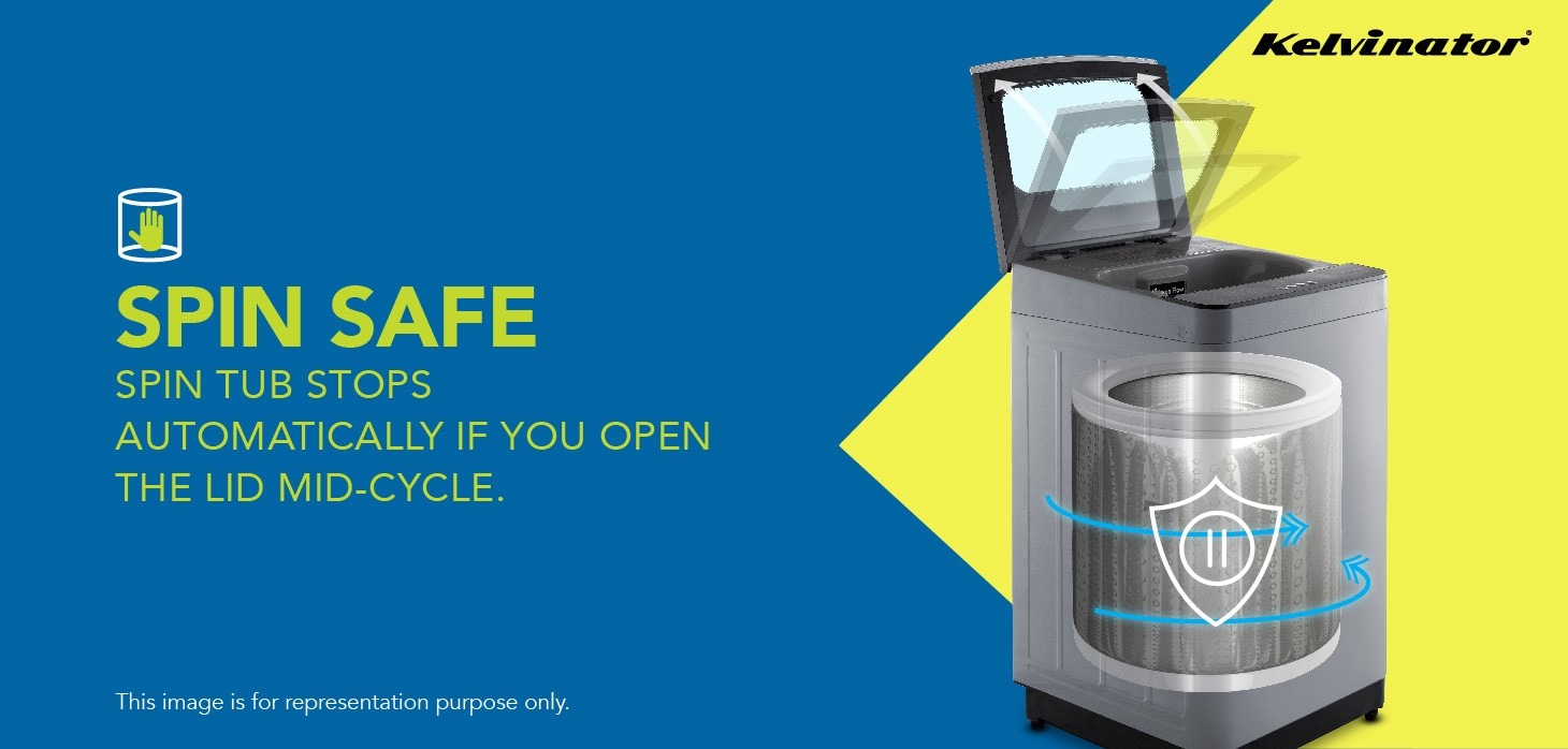 : In case you open the top lid in the middle of the spin cycle, the tub stops spinning automatically. This ensures you stay safe, as well as the safety of the washing machine.