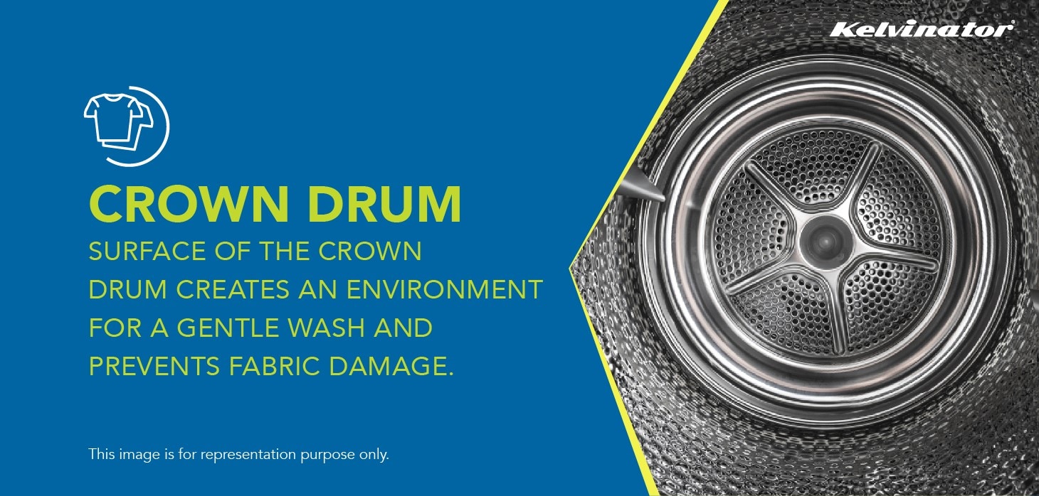 The crown drum is designed to avoid wear and tear of your clothes, thereby giving your laundry a gentle wash without no chances of damage.