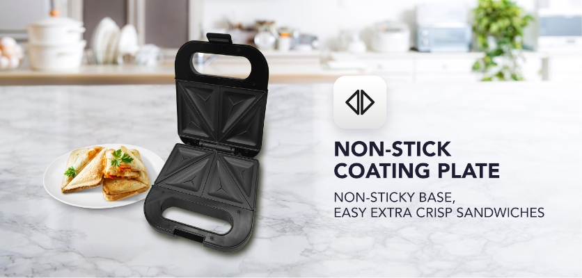 The non-stick coating in the Kelvinator Sandwich Makers, lets nothing stick to the surface. So, the Sandwiches toast perfectly and cleaning, it’s minus the hassle.