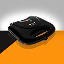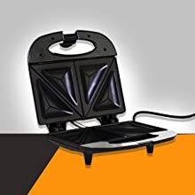 This sandwich maker features neon ready-to-cook and power on indicators, which will alert you regarding when to place the bread slices for toasting (red neon light starts glowing) and when the sandwiches are ready (green neon light starts glowing)