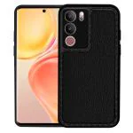 Knotyy Stich Rubberised Back Cover for Vivo V29 5G | Inner Velvet Fabric Lining | Matte Silicone Flexible |Raised Bumps for Camera & Screen Protection Back Case Cover - Black