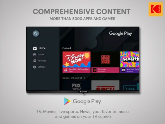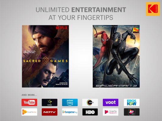 Top apps, games, movies and more available on Google Play Store. Bring home Kodak TV and enjoy Entertainment at your fingertips. Everything you need, recommended for you, available just a click away. Explore Google Play Store through dedicated hotkeys and download instantly. Enjoy 5000+ apps and games both online and offline.