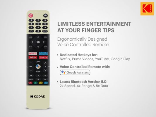 Ergonomically designed remote will transform your TV experience. Dedicated Hotkeys for Netflix, Amazon Prime Video, YouTube and Google Play Store will bring unlimited entertainment at your fingertips. Remote is also equipped with Google Assistant for smooth navigation and enables you to voice search your favorite content.