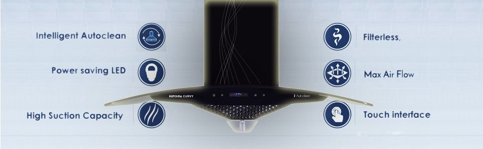 Highest suction capacity based with intelligent Technology and strong suction power, Kutchina chimney improves Aesthetics of your kitchen.