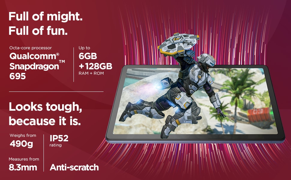| Key Features | 6GB 128GB 5G calling + WiFi (VoLTE) 26.94 cm (10.61 inch) 2K FHD Display Premium Dual tone Metal design Powered with Qualcomm Snapdragon 695 Narrow and 8.3 mm thickness Dual stereo speakers optimized with Dolby Atmos Facial recogntion & 3 years of security updates Rear Cam 13MP AF & Front Cam 8MP FF long lasting 7700 mAh battery |