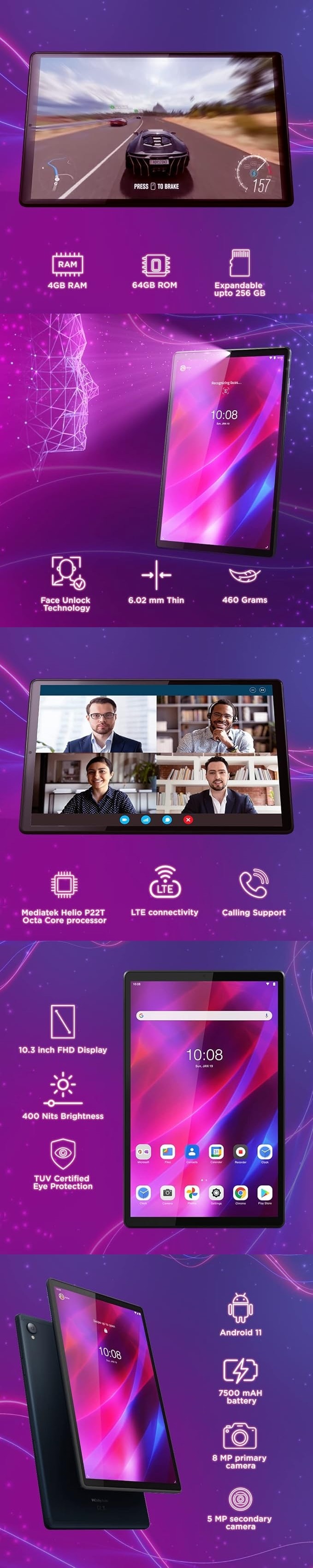 * This Lenovo Tab K10 mobile phone image is for illustration purpose only. Actual image may vary.