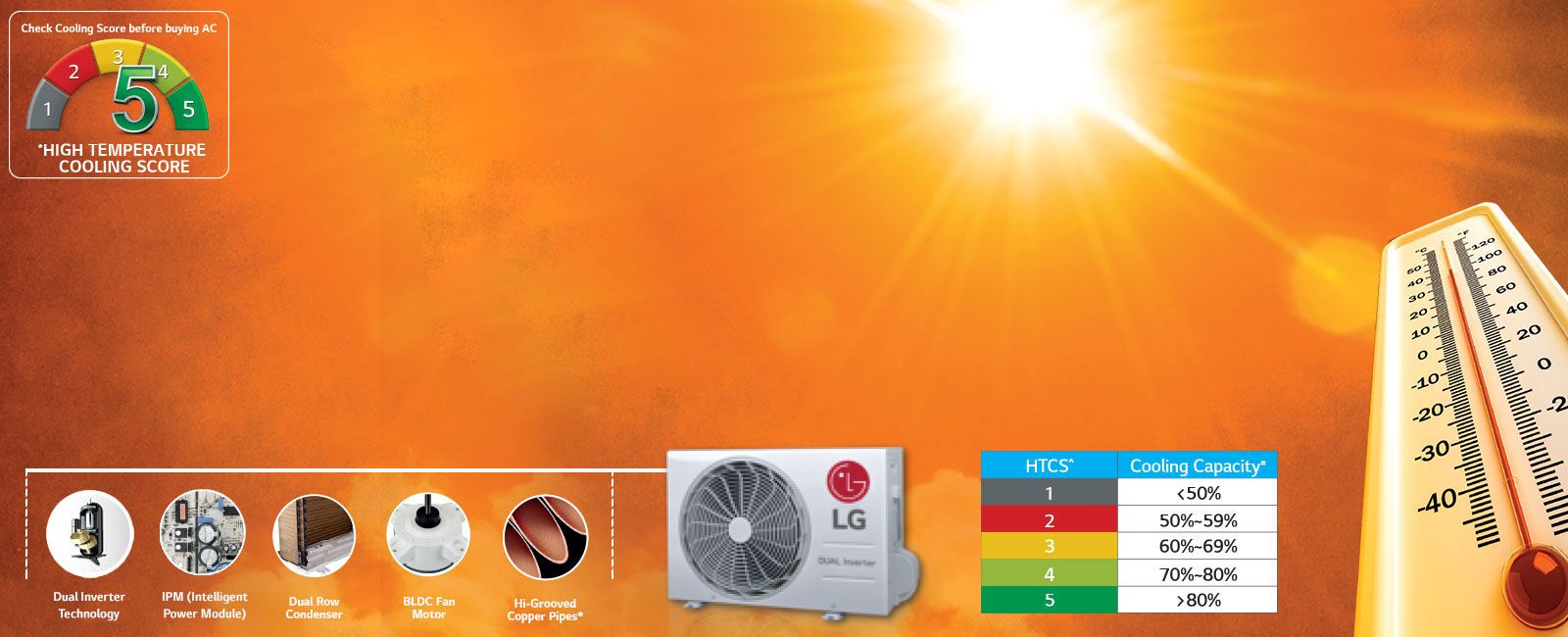 LG’s High Temperature Cooling Score of 5 is due to our years of experience and continued innovation in research and development which enables efficient refrigerant air flow & Intelligent control logic.