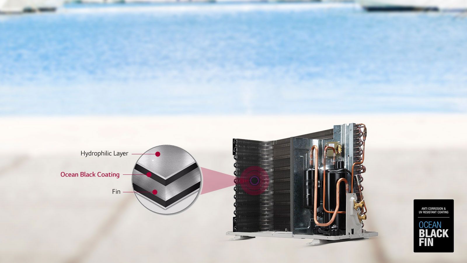 LG DUALCOOL ACs comes with Ocean Black Fin to offer unbeatable protection against dust, smoke and chemicals presents in environment and also offers protection against fin corrosion and UV resistance which in return provide better cooling and cost saving.