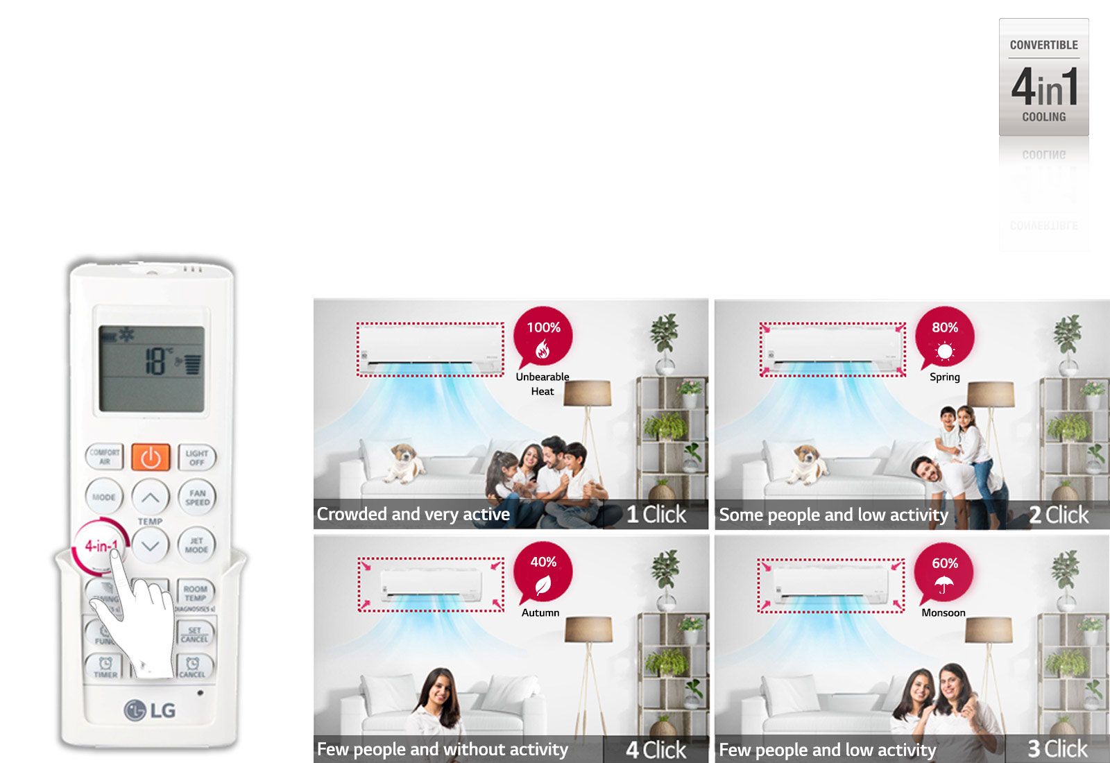 LG 4-in-1 Convertible Air Conditioner is a perfect example to our air conditioning requirements as and when required. The varied models ascertain that optimum usages of energy is ensured without any compromises on the comfort quotient.