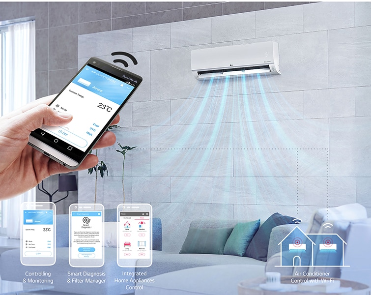 Access your air conditioner at any time and from anywhere with a Wi-Fi equipped device and LG's exclusive home appliances control app.