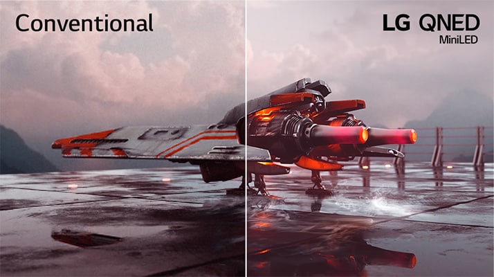LG QNED's dimming technology uses deep-learning algorithms to map and send object information to backlight dimming blocks, creating sharper, more natural images while minimizing halo effect.