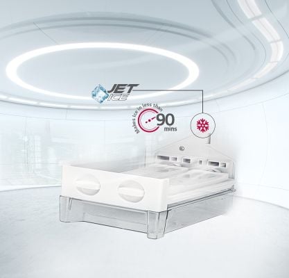 The Jet Ice Technology in LG Refrigerator helps make ice in less than 90 minutes^^. The Unique Cooling Shower that maintains a continuous flow of cool air on the tray helps make ice faster than most of the refrigerators in the same product category.