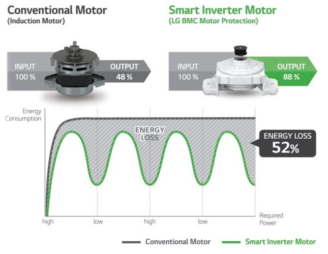 Smart Inverter washing machines adjust the energy consumption at the optimum level in accordance with the required power.
