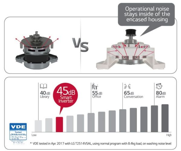 Motor is like the heart of a washer, and Inverter is like the brain of it. LG Motor system has been evolving for efficient operation and more durable maintenance. LG BMC Motor Protection shields the motor from dust, insects, and humidity of outside while reducing noise and vibration compared to conventional motor.