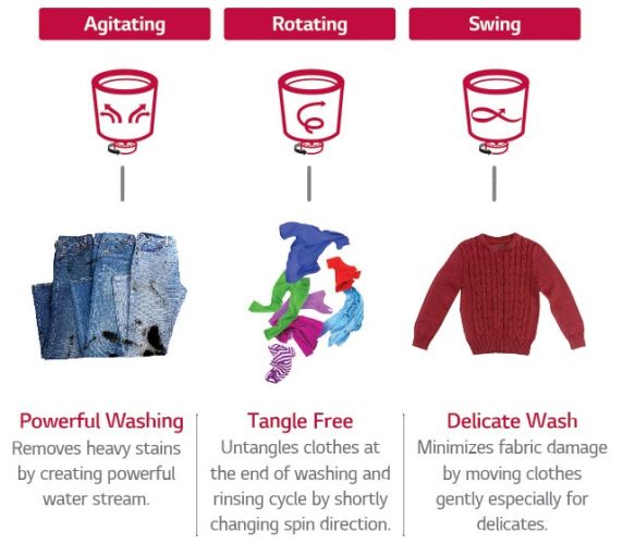 Smart Motion, 3 kinds of tub movements controlled by Smart Inverter, provides enhanced washing performance along with better care of clothes.