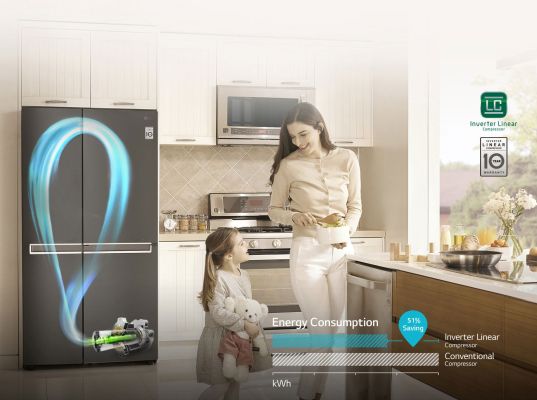 LG's unique Inverter Linear Compressor uses a linear piston drive instead of a conventional reciprocating drive. This generates less internal friction, resulting in up to 51% lower energy consumption. LG’s Inverter Linear Compressor is also backed by a 10-year warranty.