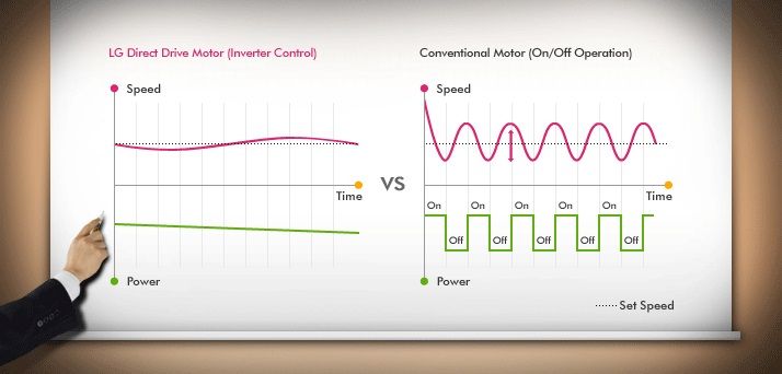 Inverter Control System generates less speed fluctuations and consumes the exact amount of electricity needed at every step. This not only saves you water and energy but also ensures optimum washing performance.