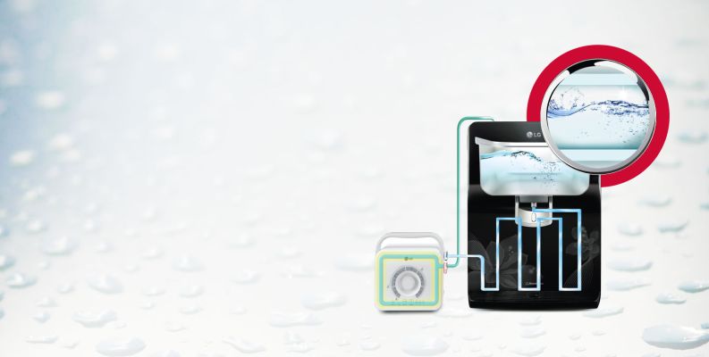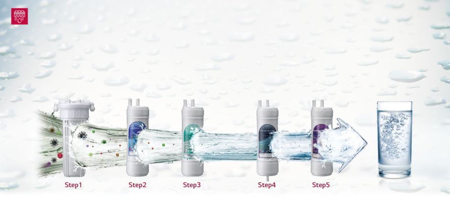 LG’s advanced multi-stage reverse osmosis (RO) system delivers safe drinking water via a multi-stage filtration method that removes contaminants as minute as 0.0001 micrometers in size.RO filtration eradicates bacteria, viruses and heavy metals to provide incredibly pure drinking water.