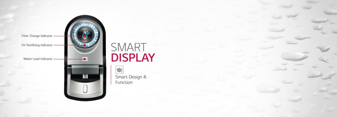 One can easily check water filter change indicator, UV Sterilizing indicator and water level Indicator from a distance or at night with Smart Display.