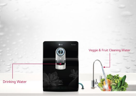 LG’s water purifier is also equipped with the 2-in-1 Care feature. This system offers the convenience of a secondary valve located on the side of the water purifier, making it possible to hygienically wash fruits or rinse vegetables with clean water.