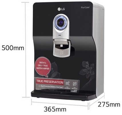 The LG water purifier’s Dual Protection Stainless Steel Water Tank, maintain freshness of water and reduce the growth of bacteria and algae. Far more hygienic than a conventional plastic tank, it ensures that water remains safe for drinking with Dual Protection Seal.