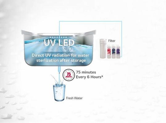 LG's advanced multi-stage reverse osmosis (RO) system delivers safe drinking water via a multi-stage filtration method that removes contaminants as minute as 0.0001 micrometers in size.RO filtration eradicates bacteria, viruses and heavy metals to provide incredibly pure drinking water.