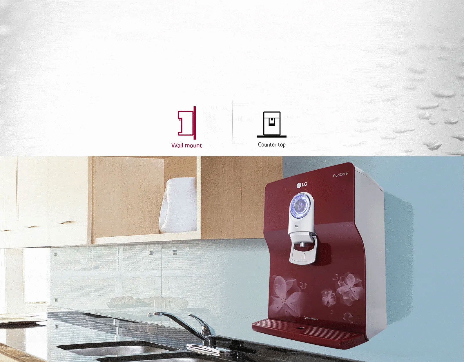 Available to install, the water purifier can either be wall mounted or can be placed on the counter top, depending on your requirement.