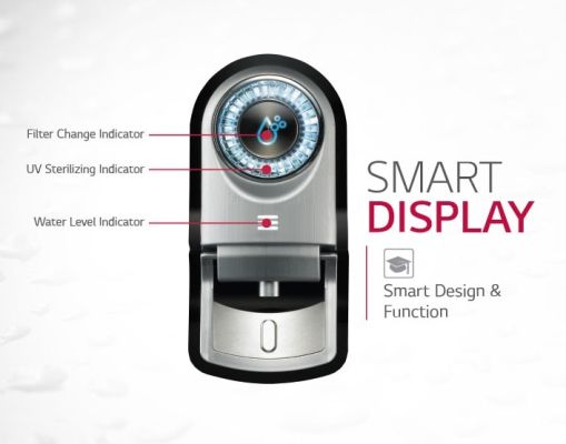 One can easily check water filter change indicator, UV Sterilizing indicator and water level Indicator from a distance or at night with Smart Display.