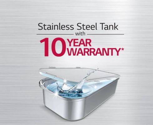 LG's Stainless Steel water storage tanks have 94.4% less E.Coli growth in 24hrs as compared to plastic tanks. Thus, stainless steel storage tank in LG True water purifier is safer than regular plastic tank in other water purifier.