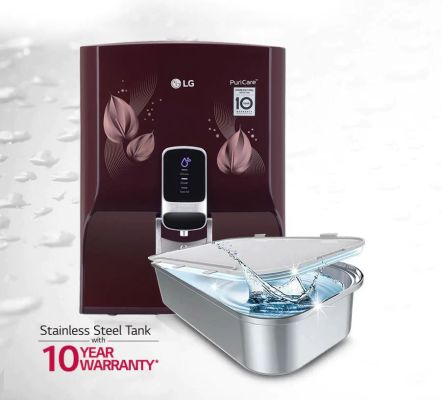 Device Protection Plan AddedLG WW174NPC, 8 Litres, RO+UV Water Purifier, Dual Protection Stainless Steel Tank, Multi Stage Filtration, Crimson Red - Leaf Pattern