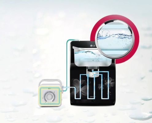 LG's advanced multi-stage reverse osmosis (RO) system delivers safe drinking water via a multi-stage filtration method that removes contaminants as minute as 0.0001 micrometers in size.RO filtration eradicates bacteria, viruses and heavy metals to provide incredibly pure drinking water.