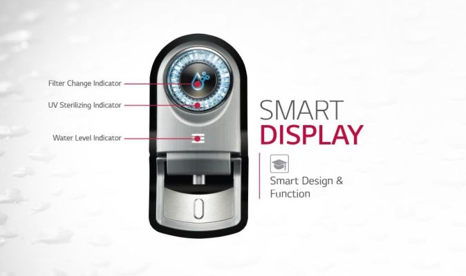 One can easily check water filter change indicator, UV Sterilizing indicator and water level Indicator from a distance or at night with Smart Display.