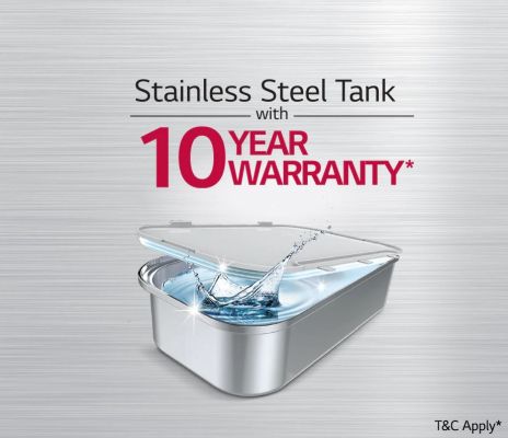 The LG water purifier's Dual Protection Stainless Steel Water Tank, maintain freshness of water and reduce the growth of bacteria and algae. Far more hygienic than a conventional plastic tank, it ensures that water remains safe for drinking with Dual Protection Seal.