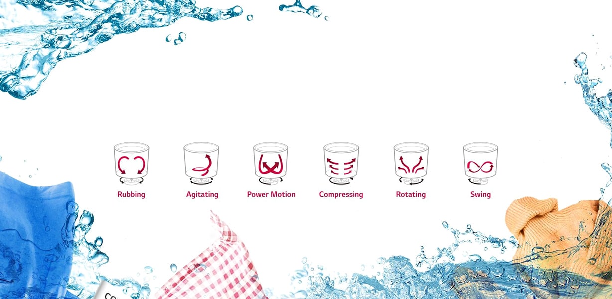 LG washers use a combination of 6 motions, based on hand-washing, to wash your clothes. Simply choose a cycle and your machine selects the best combination of washing motions to give you an outstanding wash, whilst also caring for your clothes.