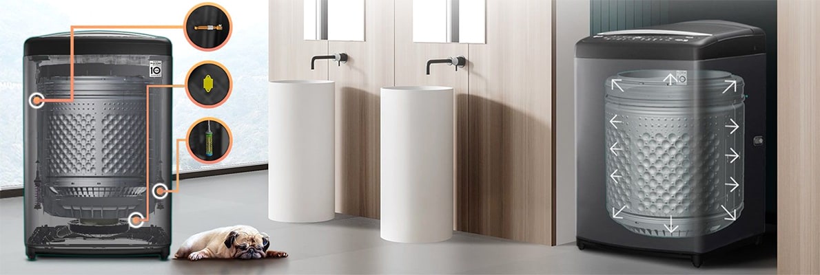 The LG direct drive motor with inverter control delivers a reliable, quiet and durable mechanism with less moving parts than the traditional belt and pulley system - that's why you get a 10 Year Parts Warranty on the LG Direct Drive Motor.