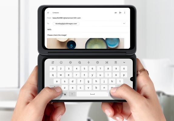 Dedicate a whole screen to what you type with the LG Smart Keyboard. Write out emails using the dual screen as your keyboard, or read friend's messages on one screen while replying on the other.