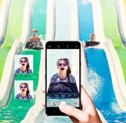 Keep-up with the action. Whether it's kids on swings or cars on the track, capture crisp, sharp, and clear photos of fast-moving subjects. AI Action Shot automatically adjusts the ISO and shutter speed to minimize photo blur.