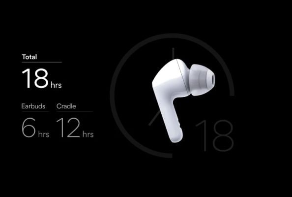Enjoy a total of 18 hours of battery life. Up to 6 hours of playback in the ear buds and an extra 12 hours in the cradle - all from one charge.
