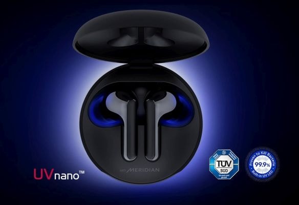 The LG FN5U's UVnano charging case is the first production that's verified to reduce bacteria based on a new ultra-violet-light test protocol developed by microbiology experts at UL LLC, considered the world's leading safety science company.