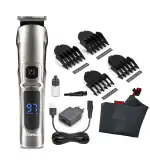 This STYLISH trimmer has a strong versatile body with premium chrome UV finish grey metallic body. It is equipped with self-sharpening stainless-steel blades and adjustable and detachable comb, so going in with a clean look or maintaining a stubble -this trimmer ensures you get what you DESIRE.