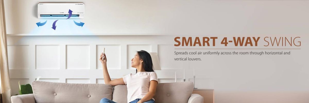 With the Smart 4-way swing through horizontal and vertical louvers, the AC spreads cool air uniformly throughout the room, and make s room cool and comfortable