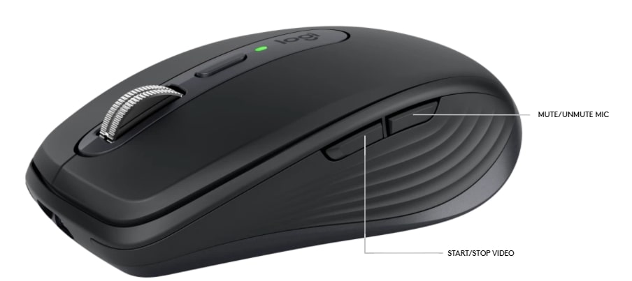 Make meetings a breeze with predefined settings for Microsoft Teams and Zoom. Instantly mute and Start/Stop the video with the two buttons on the left side of your MX Anywhere 3.