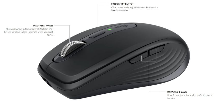 MX Anywhere 3 looks, and feels, better than ever. The elegant design features a scroll wheel made of machined steel and grippy silicone side grips for ultimate tactility. It comes in 3 distinct colorways, so you can choose a mouse that matches your laptop, and your unique style.