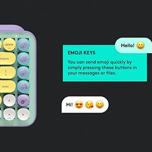 Happy? Angry? In love? Easily mix and match 8 swappable emoji keys to express your mood.