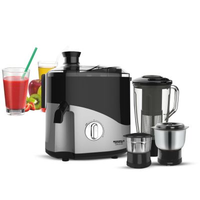 | Key Features | 550 watt Powerful Motor Superior Stainless Steel Juicer Mesh Superior Chrome Knob, Over Load Protector 30 Minutes Continuous Grinding & Juicing Detachable Anti Drip Spout Juicer Jar With Fruit Filter & A Multi-Utility Jars Multi-Functional Stainless Steel Blades |