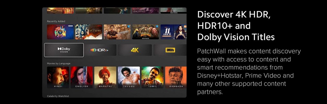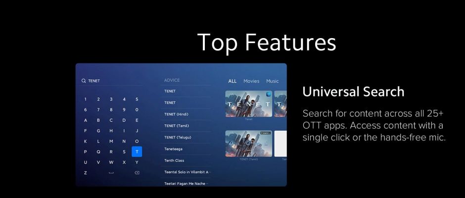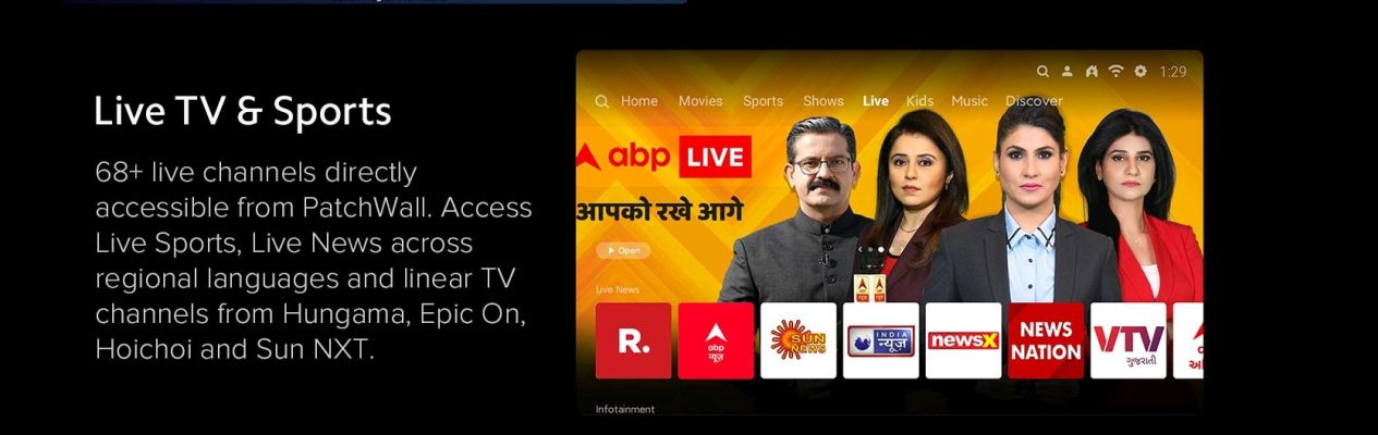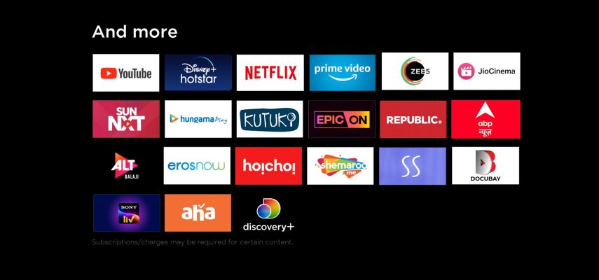 - Supported Apps: Netflix, Amazon Prime Video, Miracast, Media player, Gallery, TV Manager, TV Guide, YouTube, Play Movies, YouTube Music, Play Store, LIVE TV