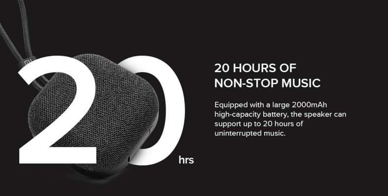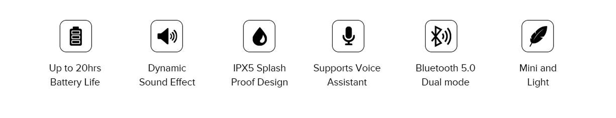 | Key Features | Upto 20 Hours of Battery Life 2000 mAh High Battery Capacity Works with Voice Assistant IPX5 Splash Proof Design, Rich and Punchy Bass Bluetooth v5.0 Dual Mode and One Key Call Function Dynamic Sound Effect and Premium Mesh Design |