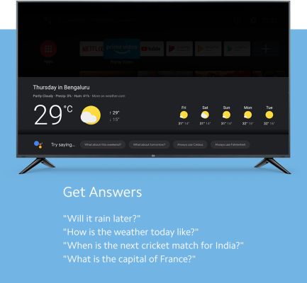 | Key Features | 80 cm (32 inch) HD Ready Display Android TV with 5000 plus Apps PatchWall Experience Bezel-less Design Mi Quick Wake Under 5 secs Captivating Horizon Display Vivid Picture Engine |