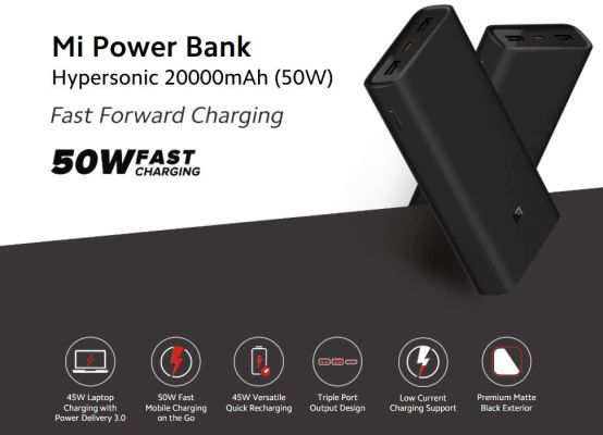 Now charge your Mi Smart Band and Bluetooth headphones with the Mi Power Bank Hypersonic 20000mAh (50W) with no current surge.